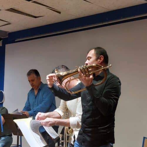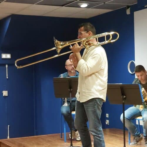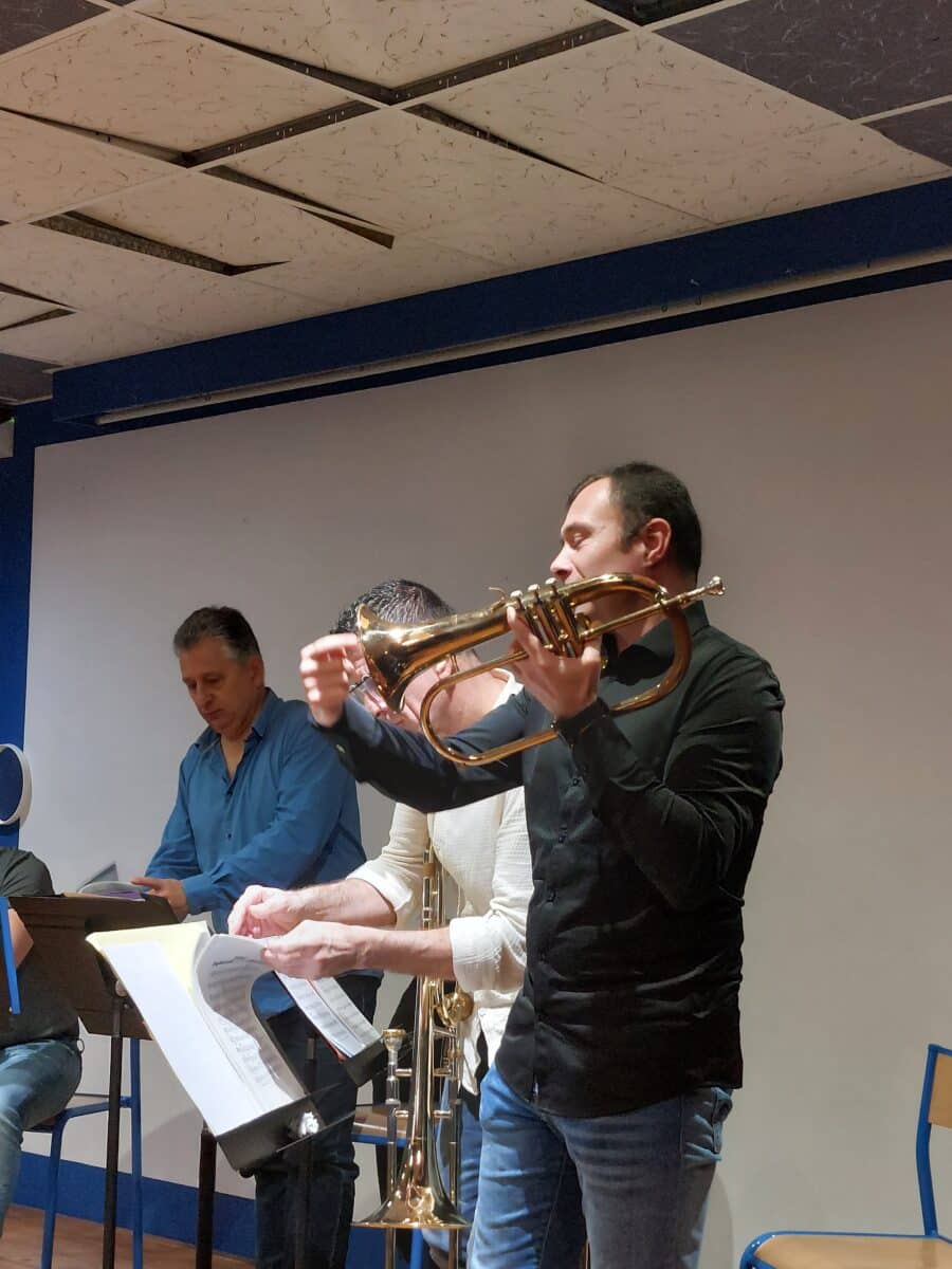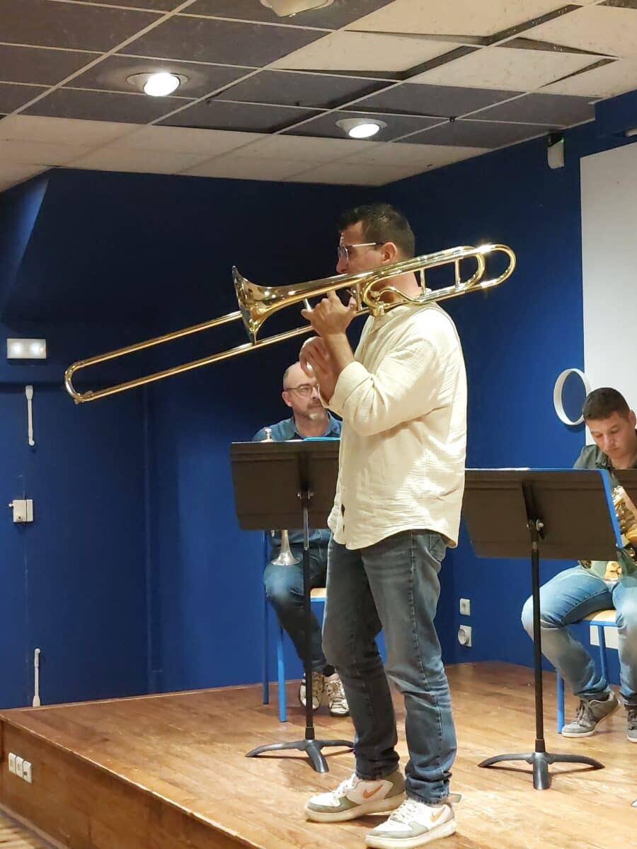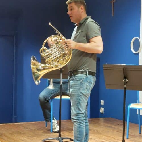Les musiciens ont présenté leurs instruments en expliquant leurs particularités sonores, les différentes techniques de jeu et le répertoire d’un quintette de cuivres, de l’époque baroque à nos jours. Les élèves ont particulièrement apprécié le medley West Side Story.