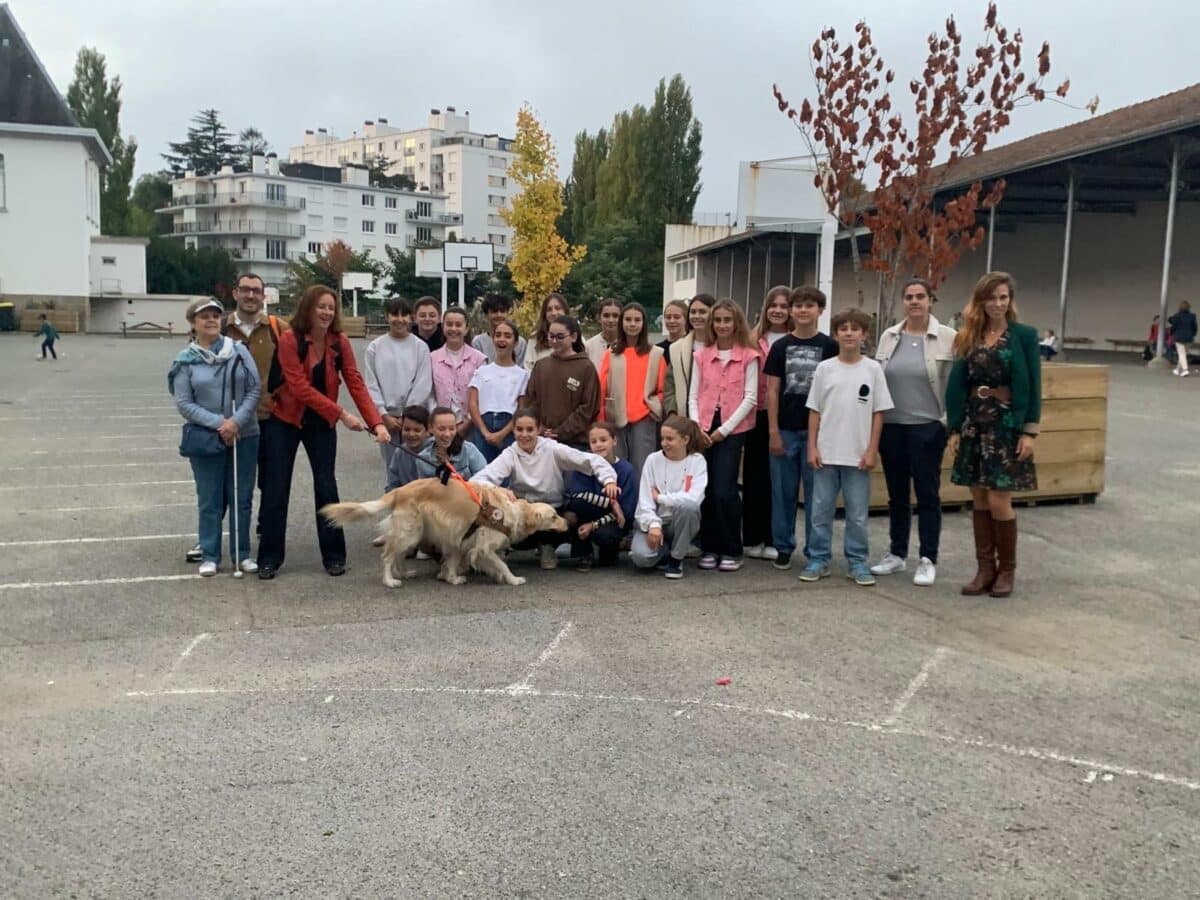 Françoise et Mélanie, accompagnées de Tchaï, la chienne guide, ont partagé avec nous leurs connaissances, leur expérience et leur bienveillance, tout en répondant à de nombreuses questions.