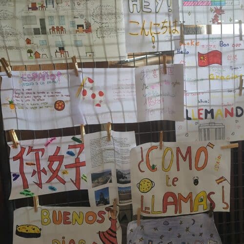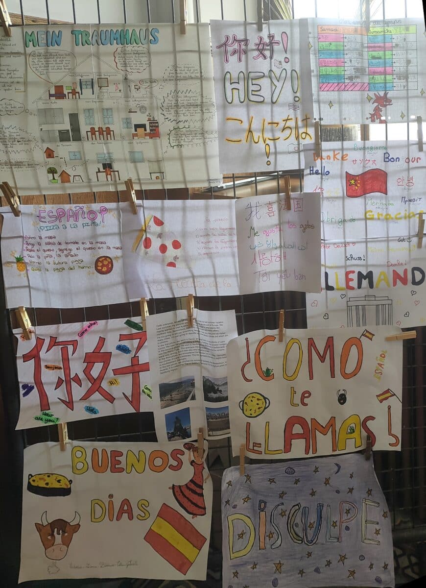 Comme vous avez pu le voir et le savoir grâce à vos enfants, la semaine des langues a battu son plein. En plus des actions déjà citées, toutes les classes de 5e, 4e et 3e ont participé à un concours de culture générale sur le thème national de la semaine des langues (les langues pour créer, innover et s’engager) grâce à un Kahoot sur la tablette. Tous les jours, les élèves de l’établissement ont eu un repas inspiré des différents pays dont les langues sont apprises dans l’ensemble scolaire. Aujourd’hui, la semaine s’est conclue par l’adoption d’un Dress code/ uniforme à la façon de nombreux établissements européens. Un mur des langues avec des travaux des élèves de l’école et du collège est aussi visible à l’accueil. Merci à tous les élèves pour leur participation à cette semaine à travers les différentes activités proposées.