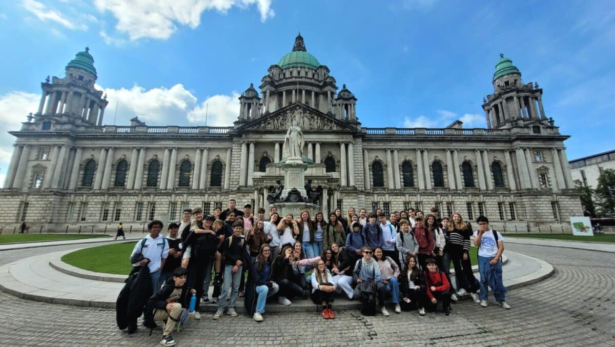 Pour conclure leur voyage, les élèves ont eu l’opportunité de découvrir plusieurs sites emblématiques : la spectaculaire Chaussée des Géants, le vertigineux pont de corde de Carrick-a-Rede, la célèbre prison de Crumlin Road à Belfast, ainsi que le stade Windsor Park, lieu emblématique du football nord-irlandais. »