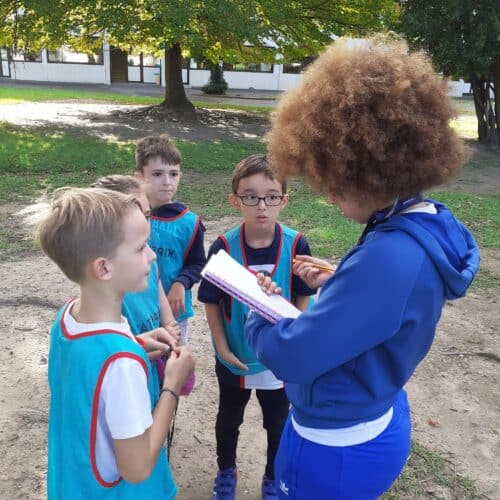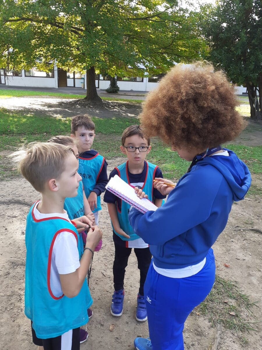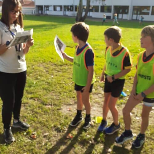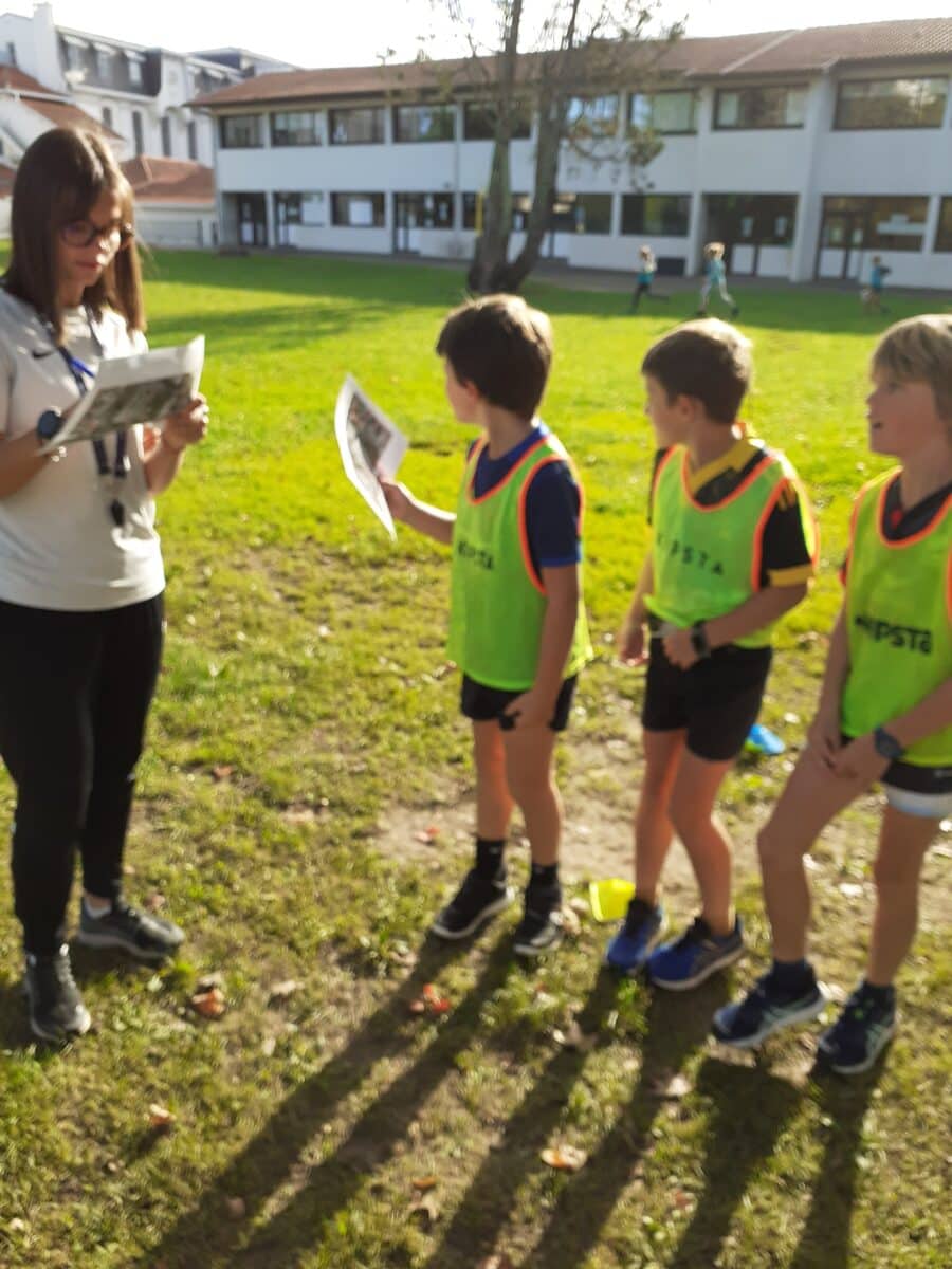 Mardi 16 septembre au matin , Yamila et Chloé, stagiaires en Brevet professionnel de la jeunesse, de l’éducation populaire et du sport auprès de l’aviron bayonnais, ont débuté le cycle course d’orientation avec les CM1B. Munis d’une carte ou d’une boussole, les sportifs du jour, par équipe de 3, ont arpenté le parc afin de débusquer les balises cachées. Certaines équipes se sont montrées redoutablement efficaces à ce jeu… Sûrement des descendants de pirates habitués aux cartes au trésor !