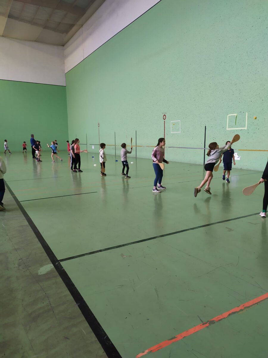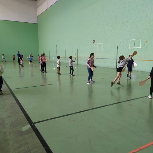 Les CM1A et B ont participé à une rencontre sportive sur le thème de la pelote basque au mur à gauche du complexe sportif de Ste Croix à Bayonne mardi 10 mars. Trois ateliers étaient proposés : tournoi de pelote à main nue, tournoi de pala et découverte du lancer avec la chistera. Les élèves ont mis à profit le cycle pelote réalisé à l’école durant la période précédente : de vrais champions de pelote !