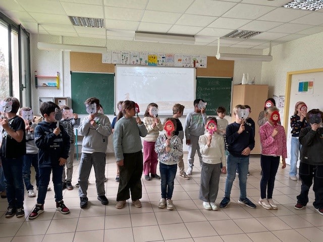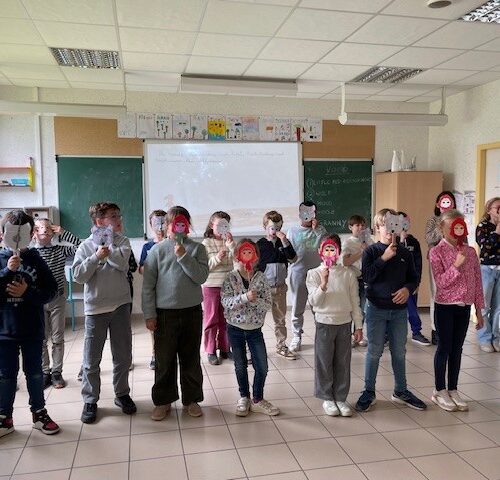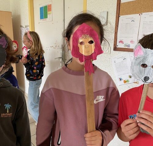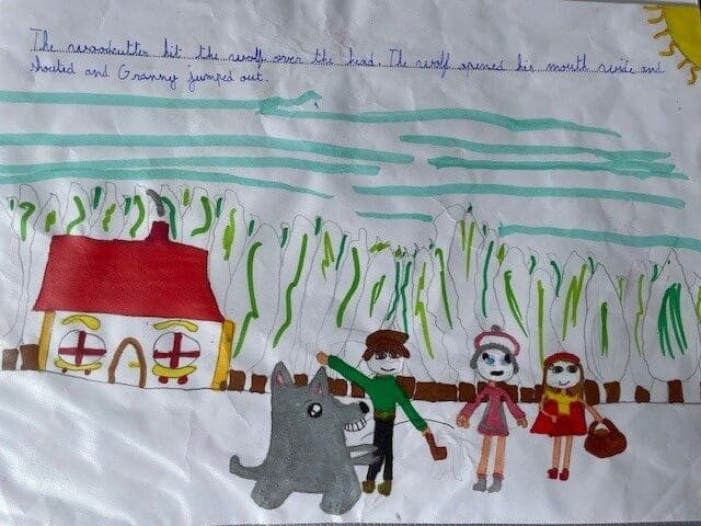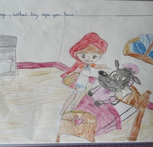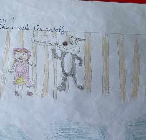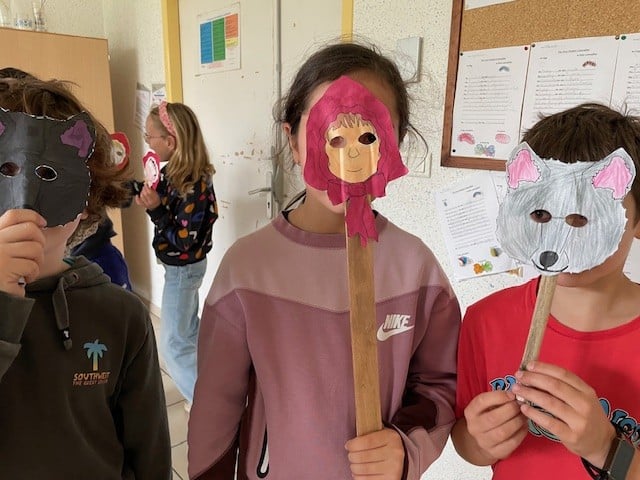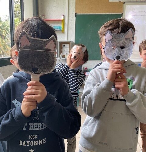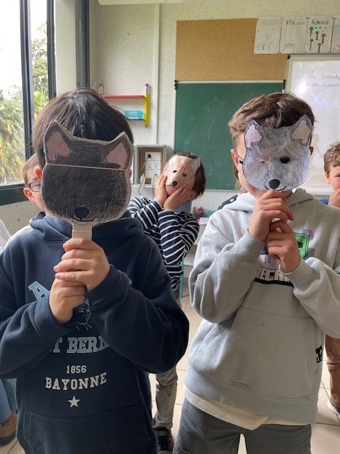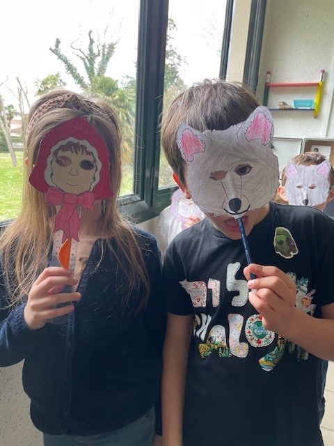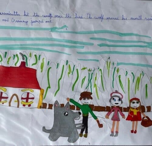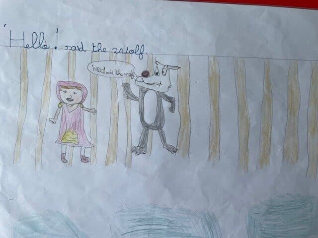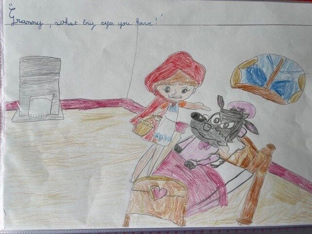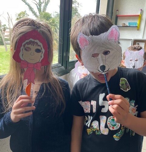 The CE2 read the story of Little Red Riding Hood to the CP and CE1 classes. They illustrated the story with their own pictures to help explain the vocabulary.