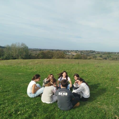 L’avantage, quand on est interne à Bayonne, c’est que l’on peut monter dans un bus Txik Txak et se retrouver, 35 minutes plus, complètement dépaysé, face à un paysage différent. Un mercredi, l’océan, la semaine suivante, le cœur d’une ville hautement historique, l’immense forêt de Pins d’Anglet .. Aujourd’hui, notre bus nous menés sur les premières hauteurs face aux montagnes. Magique !